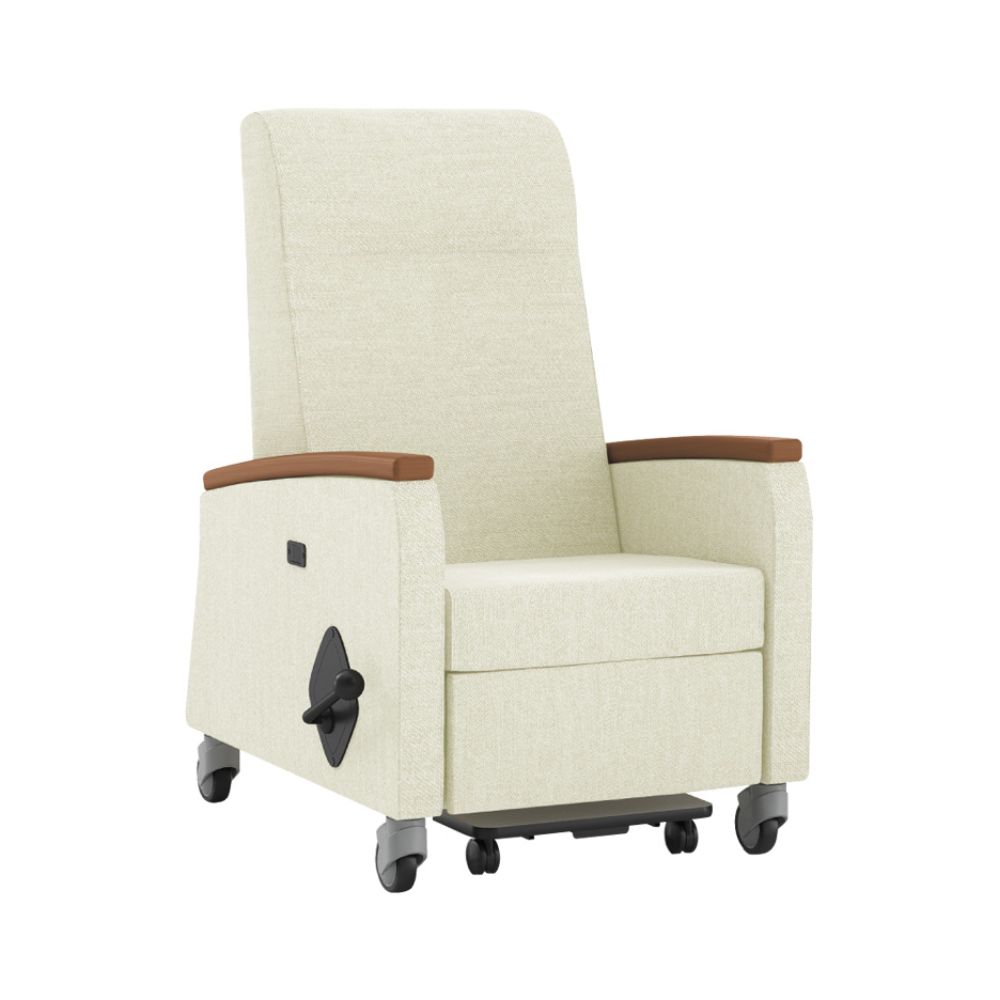 Oasis Recliner provides a transitional aesthetic and is thoughtfully designed for healthcare environments, with a high level of comfort and ease-of-use for patients and caregivers.