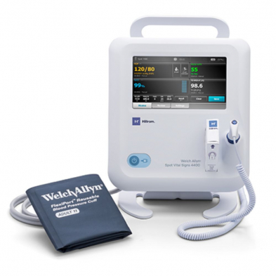 The Welch Allyn® Spot Vital Signs 4400 Device gives you a simple, all-in-one, touchscreen solution for measuring patient vital signs. Now you can quickly capture a full set of vitals - including temperature, blood pressure, pulse rate and SpO2 - right from the home screen.